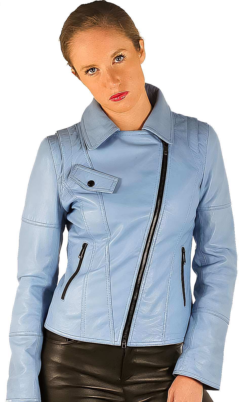 Frondeuse, imposante, téméraire voici un exemple des qualitatifs d’une veste en cuir. Authentique vêtement de...