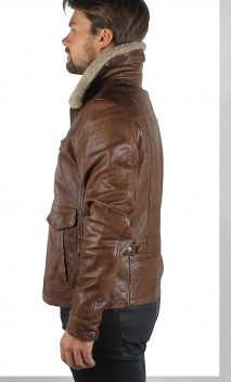 Blouson de la marque Daytona, en agneau dans un beau coloris de marron patiné, ciré vieilli. Ce blouson de style aviateur est un modèle intemporel que vous pourrez porter en toutes saisons de nombreuses années.  De nombreux détails structurent le modèle: jeux de surpiqûres, poches mains latérales surmontées de poches plaquées avec rabats cuir pressionné, fermeture par zip central, poche poitrine zippées, martingale surpiquées dans le dos prolongée par pattes avec double pressions afin d'affiner le cintrage du blouson. Col chemise doublé mouton amovible. Poignets pressions. 3 poches intérieures. Doublure chaude ouatinée coton.