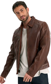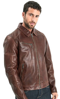 Blouson Daytona en cuir d'agneau épais, modèle MICK. Blouson coupe cintrée avec col chemise, fermeture par zip central, poche poitrine zippée, jeu de surpiqures. Peau très souple avec un aspect vieilli et authentique. Deux poches mains latérales zippées. Poignets zippés. Ce Blouson a subi un léger délavage, pour conférer au cuir un aspect vieilli authentique ce qui le rend à la fois vintage et décontracté. Doublure coton et polyester avec 3 poches intérieures.