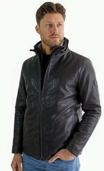 Veste DONDERS en cuir dagneau, modèle 52398. Veste coupe droite avec col chemise, fermeture par zip central avec parement douillet amovible, jeu de surpiqures. Peau très souple avec un aspect authentique. Deux poches latérales zippées, surmontées de deux poches mains latérales passepoilées. Doublure chaude polyester avec 2 poches intérieures.