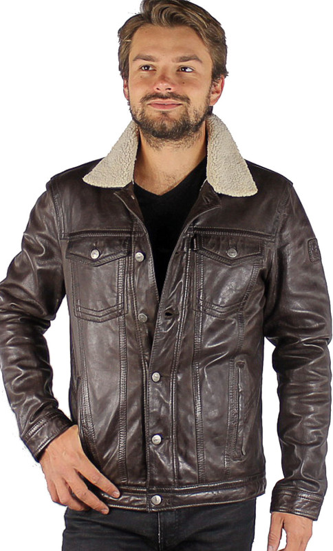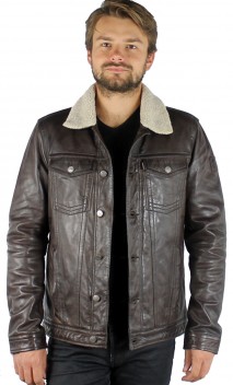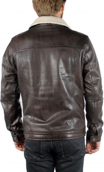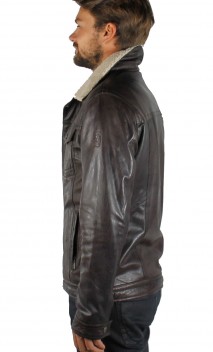 Veste de la marque Oakwood en cuir d'agneau, très souple et légère dans un coloris de dark brown patiné et vieilli. Cette veste western essentielle s'offre un lifting contemporain dans cette version slim de l'incontournable veste 3301. Avec ses boutons à queue et son empiècement sur le devant de l'épaule, c'est l'élément indispensable de votre garde-robe. De nombreux détails structurent le modèle: coupe slim, col chemise classique, poches poitrine, poches mains latérales zippées, poignets fonctionnels avec boutons. Chaleur garantie pour ce blouson.Tout l'intérieur, ainsi que le col sont garnis par un doublage imitation mouton. 2 poches intérieures zippées.