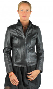 Blouson de la marque Giorgio, en cuir d'agneau, souple, léger, aspect mat, et doux au toucher. Produit que vous associerez avec l'ensemble de votre garde-robes. Sport- chic par excellence, fera sans problème office de blazer. Produit court avec un joli cintrage, fermeture par zip central avec retour cuir sur la fermeture rendant la fermeture invisible. Jeux de surpiqûres, poches mains latérales passepoilées. Doublure polyester.
