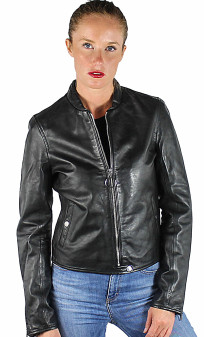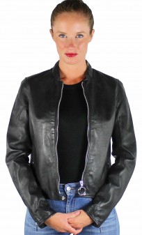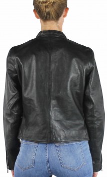 Blouson de la marque Rose Garden, en cuir d'agneau pour obtenir le maximum de souplesse et de légèreté. Modèle d'inspiration minimaliste, cintrée et chic. On craque pour le look raffiné et minimaliste de ce blouson. Facile à assortir avec toute notre garde-robe, on porte aussi bien ce blouson femme avec un jean ou une petite robe. Fermeture par zip central, col motard , poches mains latérales . Doublure polyester avec poche .