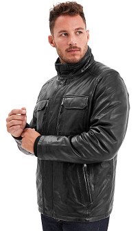 Cette veste en cuir d'agneau lavé impose son style rétro avec une certaine élégance.