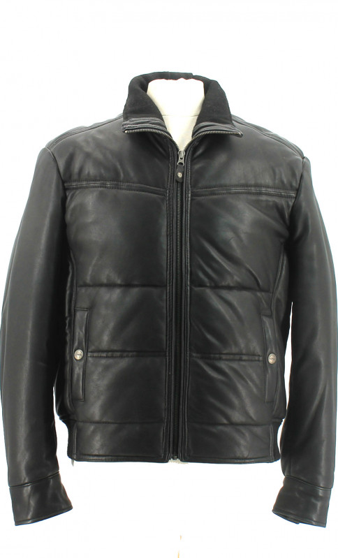 Doudoune en cuir d'agneau de la marque daytona, souple et très chaude. Col montant doublé de jersey noir.
