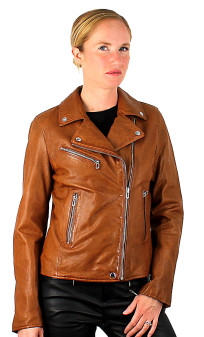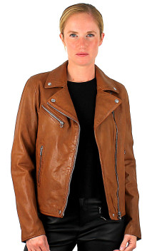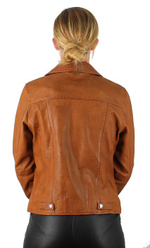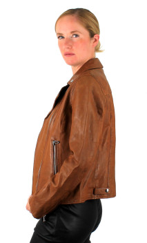 Perfecto de la marque ROSE GARDEN en cuir d'agneau, lui apportant souplesse et légèreté, et douceur au toucher. Coupe perfecto cintrée avec fermeture par zip asymétrique. Blouson que l'on associera facilement avec toute sa garde-robe. 2 poches mains latérales zippées et une poche poitrine avec zip. Poignets zippés. Petites pattes pressionnées dans le dos, à la base du perfecto. Doublure coton.