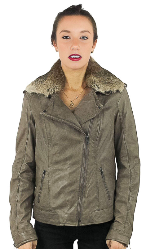 Perfecto de la marque OAKWOOD, en cuir de mouton qualité nappa pour la souplesse et la légèreté. Perfecto que vous porterez facilement grâce à sa coupe cintrée et épurée. De nombreux détails structurent le produit: pattes pressionnées sur les épaules,  jeux de surpiqûres pour un look travaillé, fermeture par zip décalé, le col tailleur avec pressions siglées Oakwood, poches mains verticales zippées, zips aux poignets, col amovible en lapin. Doublure coton avec 2 poches intérieures zippées.