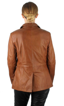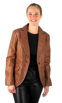Blazer de la marque Giorgio en cuir d'agneau souple, léger et au toucher très doux. Coupe classique et très chic avec un beau cintrage mettant en valeur la silhouette. Style veste tailleur que vous pourrez associer avec l'ensemble de votre garde-robe. Fermeture par 1 bouton. Poches mains latérales avec rabats cuir surmontées d'une poche. Doublure polyester. Poignets boutonnés