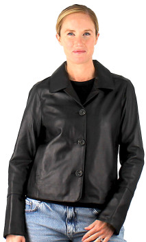 La veste courte en cuir pour femme OAKWOOD - modèle LEXIA. Fermeture boutonnée sous un col tailleur pour cette veste courte boutonnée en cuir lisse. Le porté est chic, la coupe impeccable pour une aisance justement dosée.